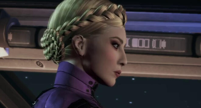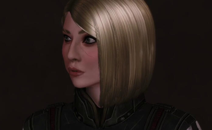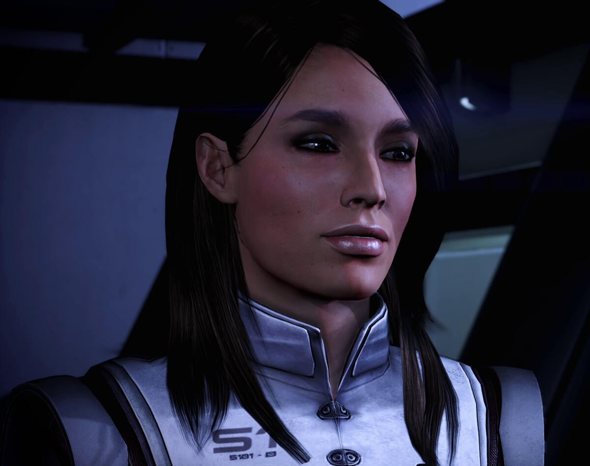 In the first game, Katrina has been back on active duty for a little over a year under Anderson's command, after undergoing recovery from the events of Akuze. During that time, she completed her training at Rio de Janeiro's Interplanetary Combatives Training facility and received her N7 Special Forces designation. While she does not emblazon the N7 logo on her fatigues--instead wearing the alternate regulation BDUs she's granted as a naval officer--she does emblazon it on her armour. Her hair is kept cropped in a short bob, worn down most of the time (though she may wear it up infrequently in a ponytail). She's straightforward and honest, but not above the occasional threat to get what needs to be accomplished done.