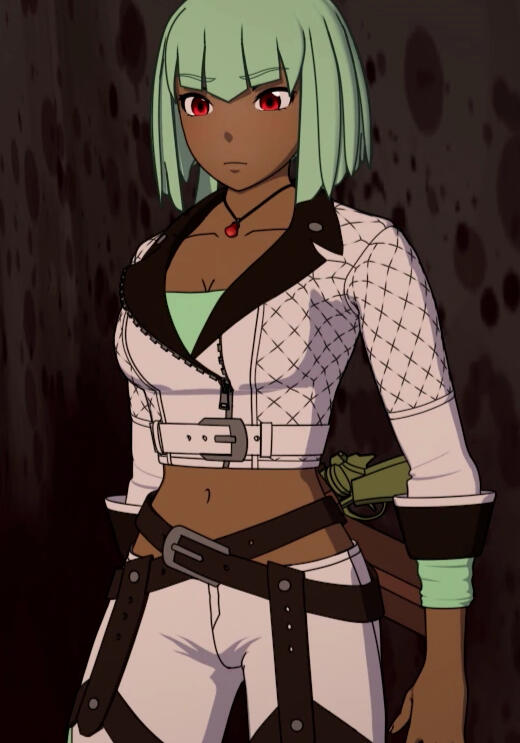 Emerald was born in the City of Vacuo, to two parents who were hard workers at the Mistral Trading Company location in the city. As a child, Emerald spent most of her time in the care of a nanny, who was unfortunately not the nicest person; despite Emerald's attempts to speak up, she was never heard, as the nanny's manipulative nature was enough to fool her parents.At the age of five, on a night where Emerald was home with her parents, things went awry. Emerald was kidnapped by traffickers and shipped to Mistral. In an attempt to force compliance, her family was slaughtered in front of her, leaving her to wish she could have seen something else--just not that.Emerald was "purchased" by a less-than-reputable merchant and his wife. She was kept in their basement and only let up to do household chores like cleaning and laundry for the household, at which point she was given the opportunity to bathe and have something to eat. For the most part, she starved, as she was given limited food and water rations to live off of. At first, she was defiant, which led to her being left to starve in their basement. She eventually resorted to quiet compliance with their demands to avoid trouble (and ensure she was at least somewhat fed).One night, Emerald grew tired of her own complacency and, using her Semblance, managed to rob the man blind of enough money and jewels to escape. Stowing away on a caravan headed for the coast, Emerald had just enough money to get herself passage on a boat headed for Vale. She was eleven.From there, she became nothing more than a street rat, forced to steal to survive and spending too many nights to count starving.Nevertheless, she slowly socked away money as she did, enough that she was able to have a blacksmith help her forge Thief's Respite. She had small aspirations to become a Huntress, though she often struggled to see that goal.That all changed, however, when she met Cinder; it was a bold and daring move for her to steal from a jewelry store, but as she was growing hungrier, she was becoming more and more desperate. As always, her desperation turned to agreement, and Emerald quickly abandoned her dream of attending Beacon in favour of helping Cinder, who promised her the one thing she craved: that she'd never feel like she was starving ever again.